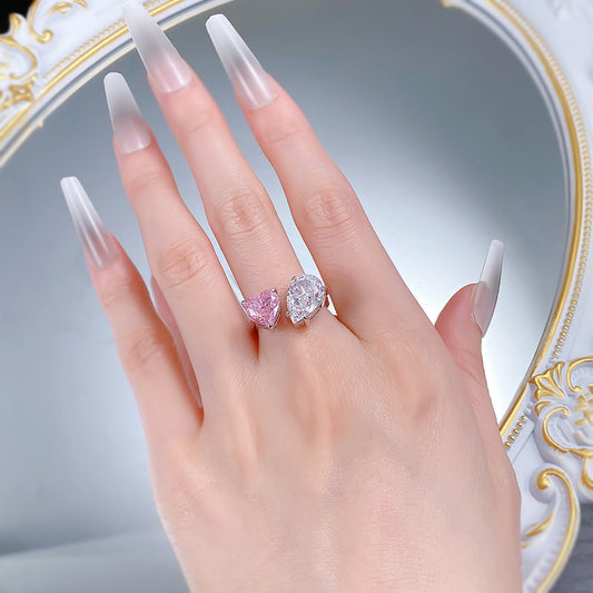 Toi et Moi Pink Heart & White Pear Diamond Ring