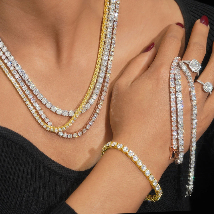 MOISSANITE TENNIS CHAIN – D-COLOR VVS – 14K GOLD PLATED – 16″–24″