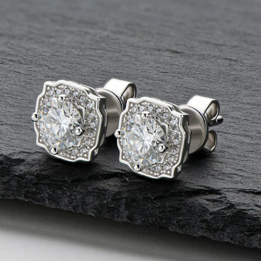 Elegant Halo Classic Moissanite Studs