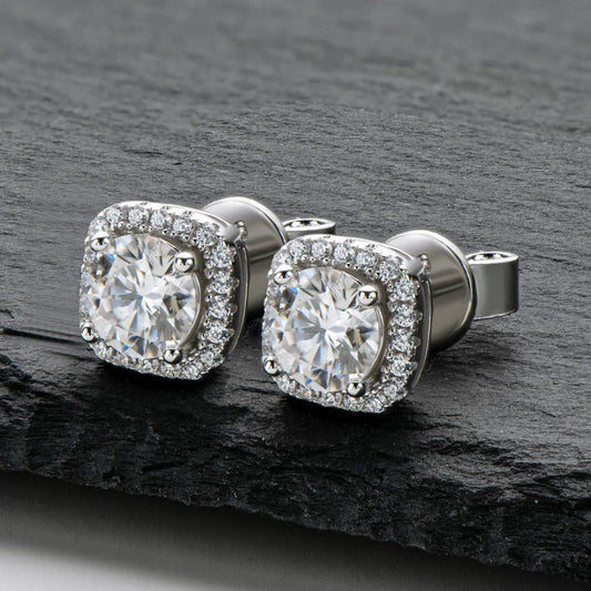 Square Halo Moissanite Earrings in Silver