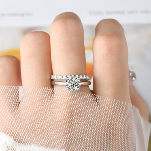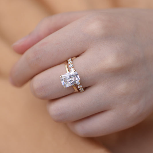 Each bridal set includes a beautifully matched engagement ring and wedding band, crafted from premium 925 sterling silver or silver and gold plated finishes. Whether you're looking for a classic, modern, or vintage wedding ring set, our collection includes diamond simulant sets (CZ), moissanite bridal sets, and lab-created gemstone wedding sets.